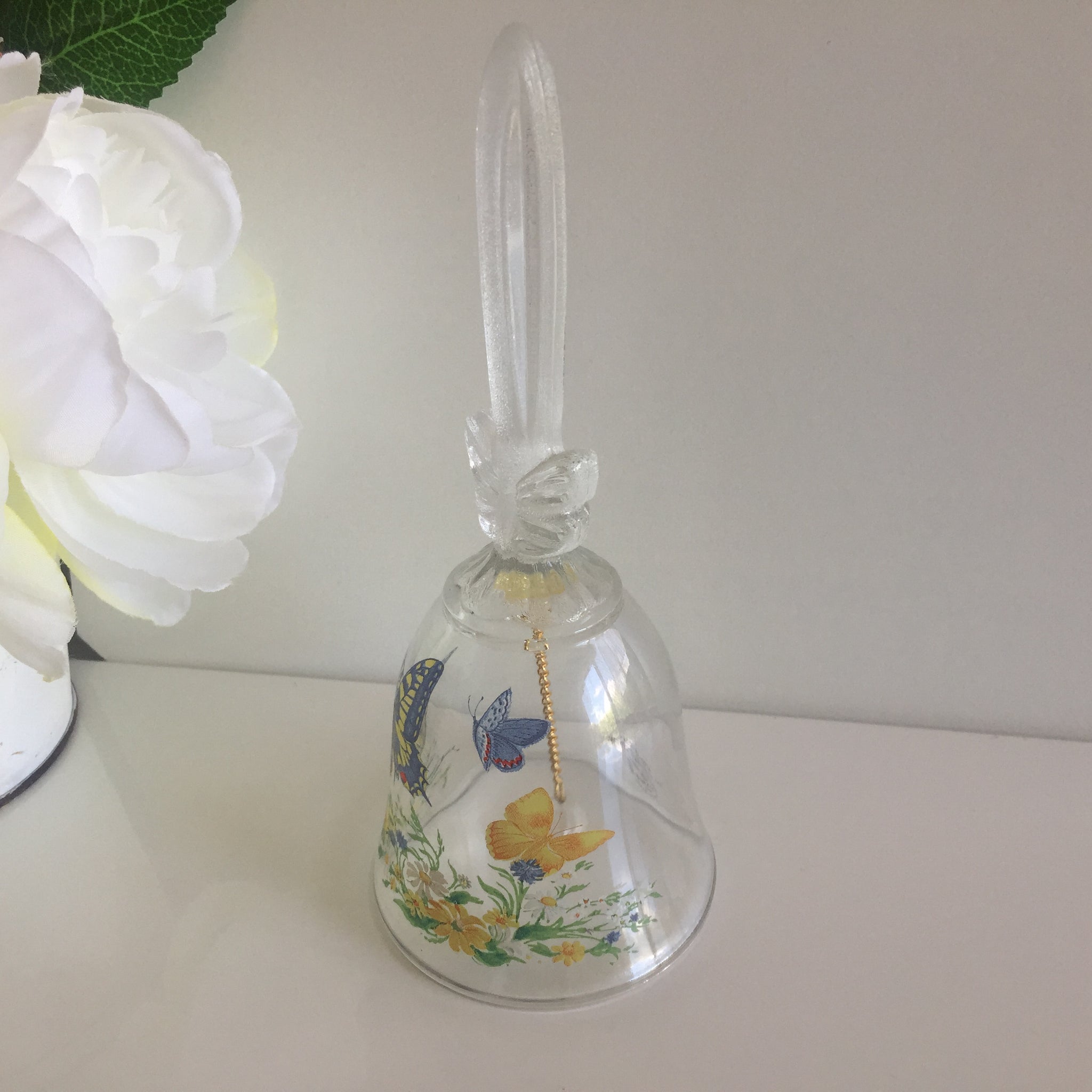Discover timeless elegance with this exquisite 1990 Avon crystal bell, a treasured piece for vintage collectors and home décor enthusiasts. Adorned with a delicate butterflies and flowers pattern, this collectible showcases the craftsmanship Avon was renowned for during this era.