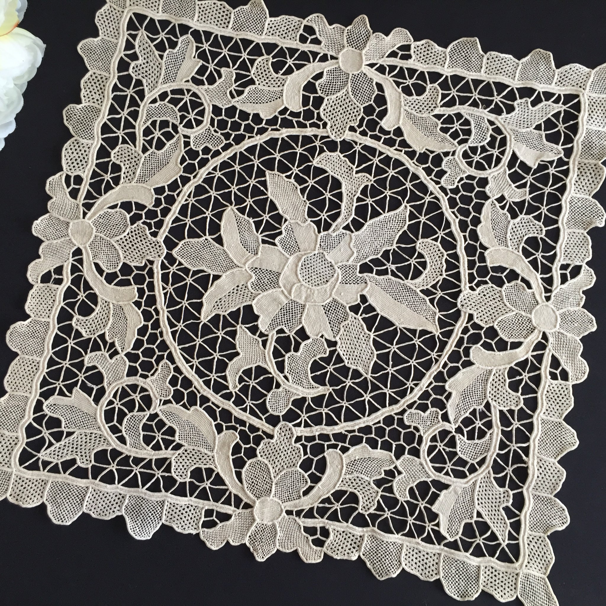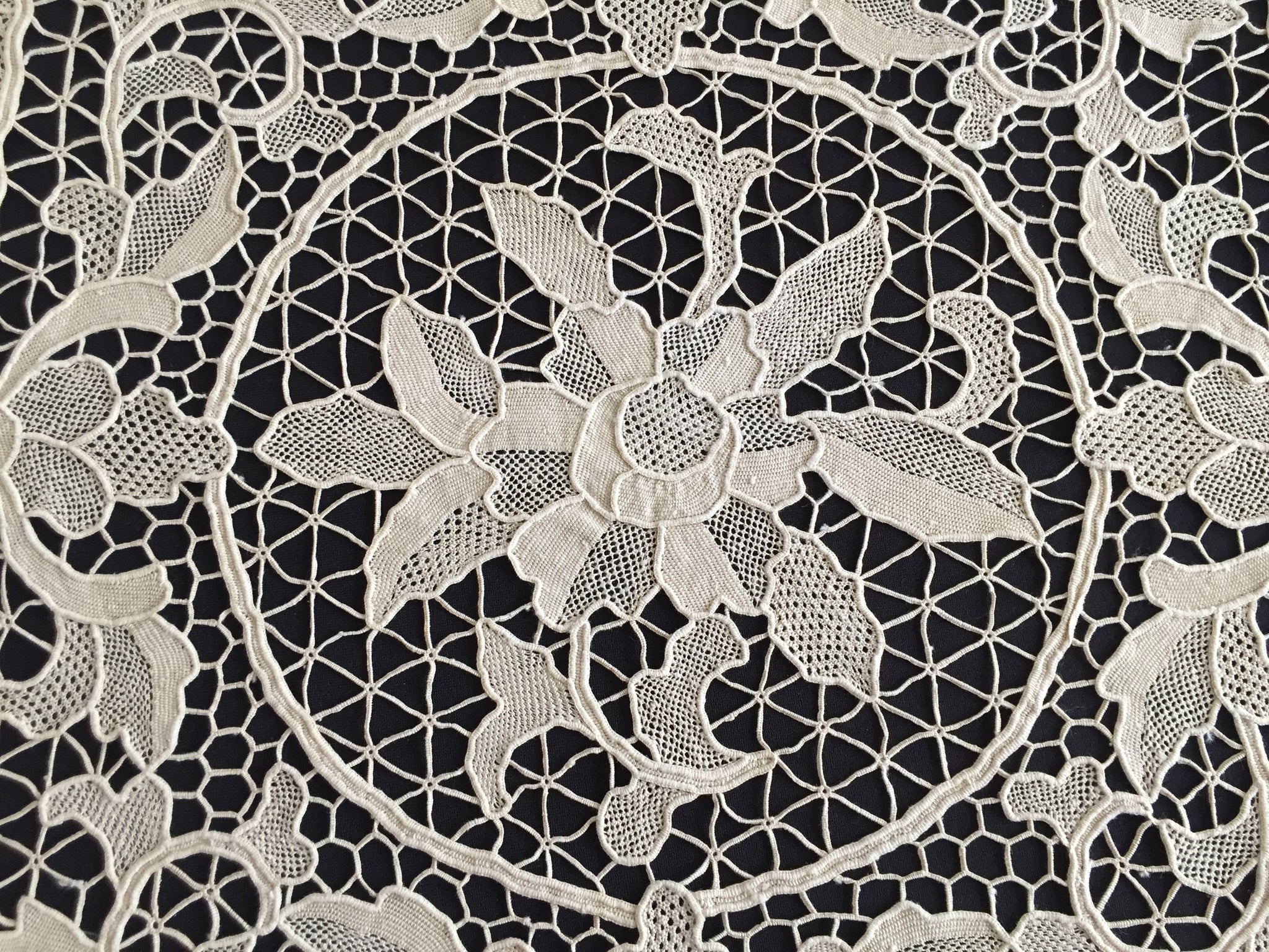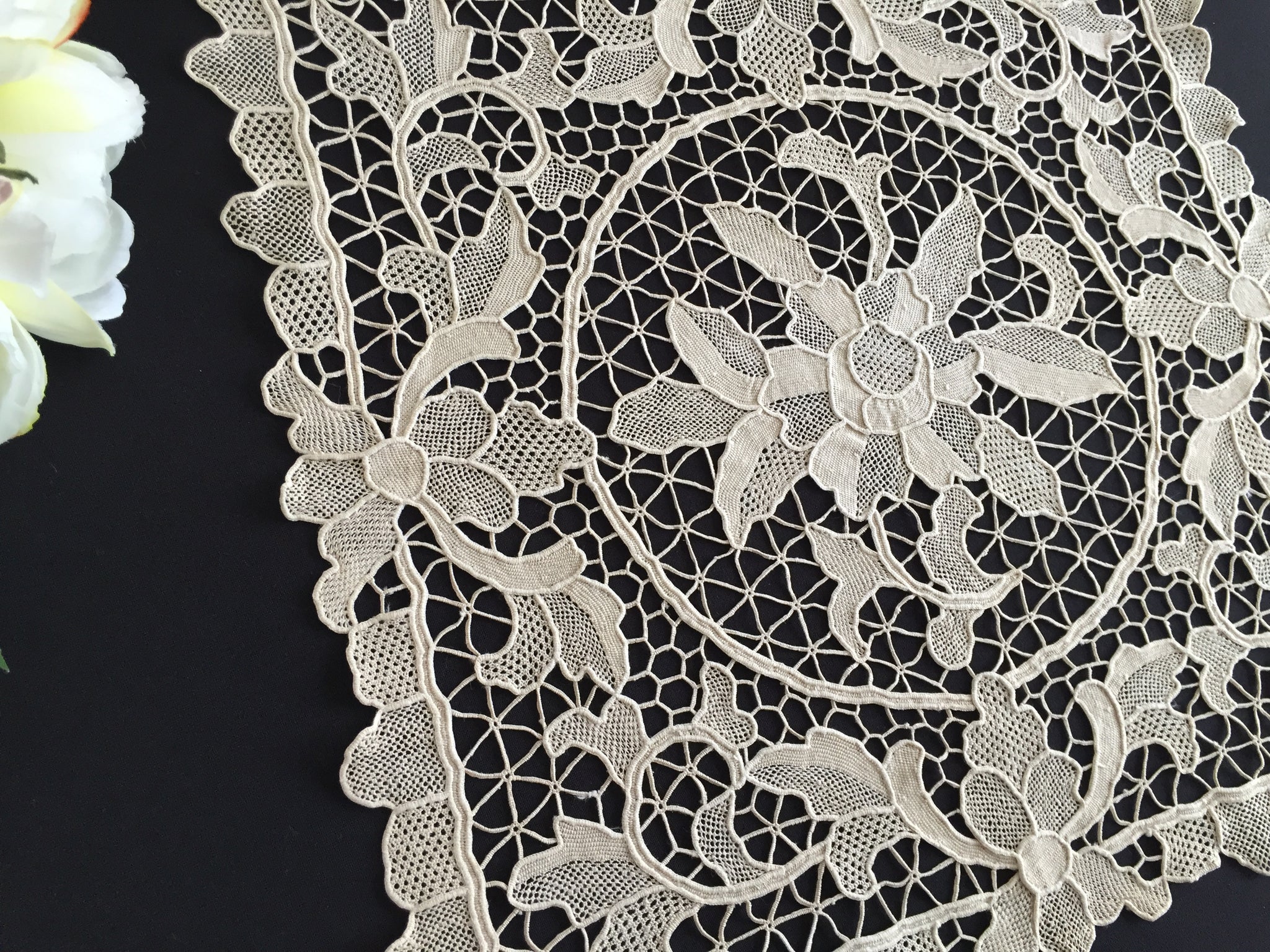 Vintage Needle Lace Doily: Handmade Italian Style Floral Point de Venise