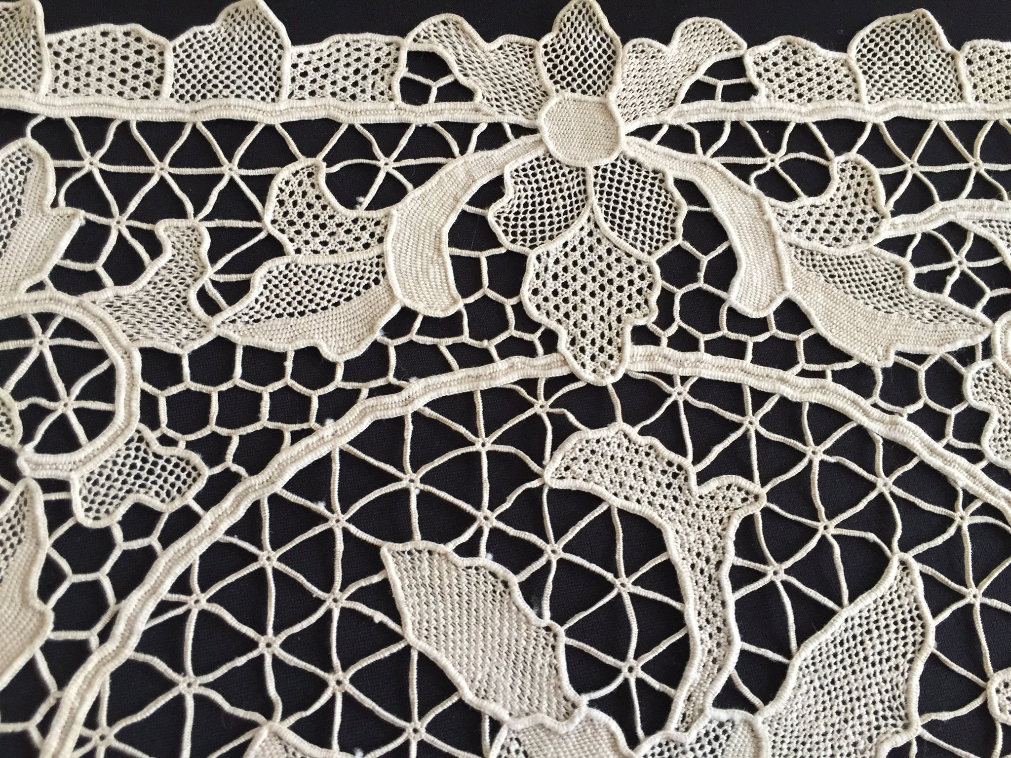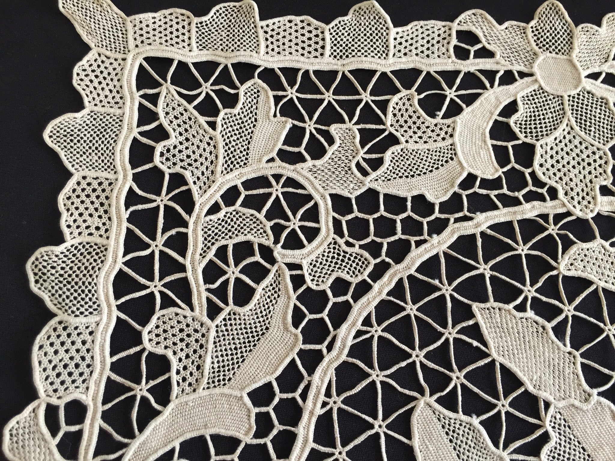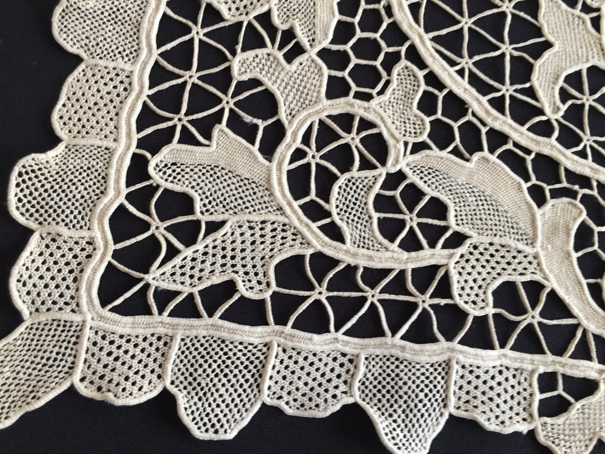 Vintage Needle Lace Doily: Handmade Italian Style Floral Point de Venise