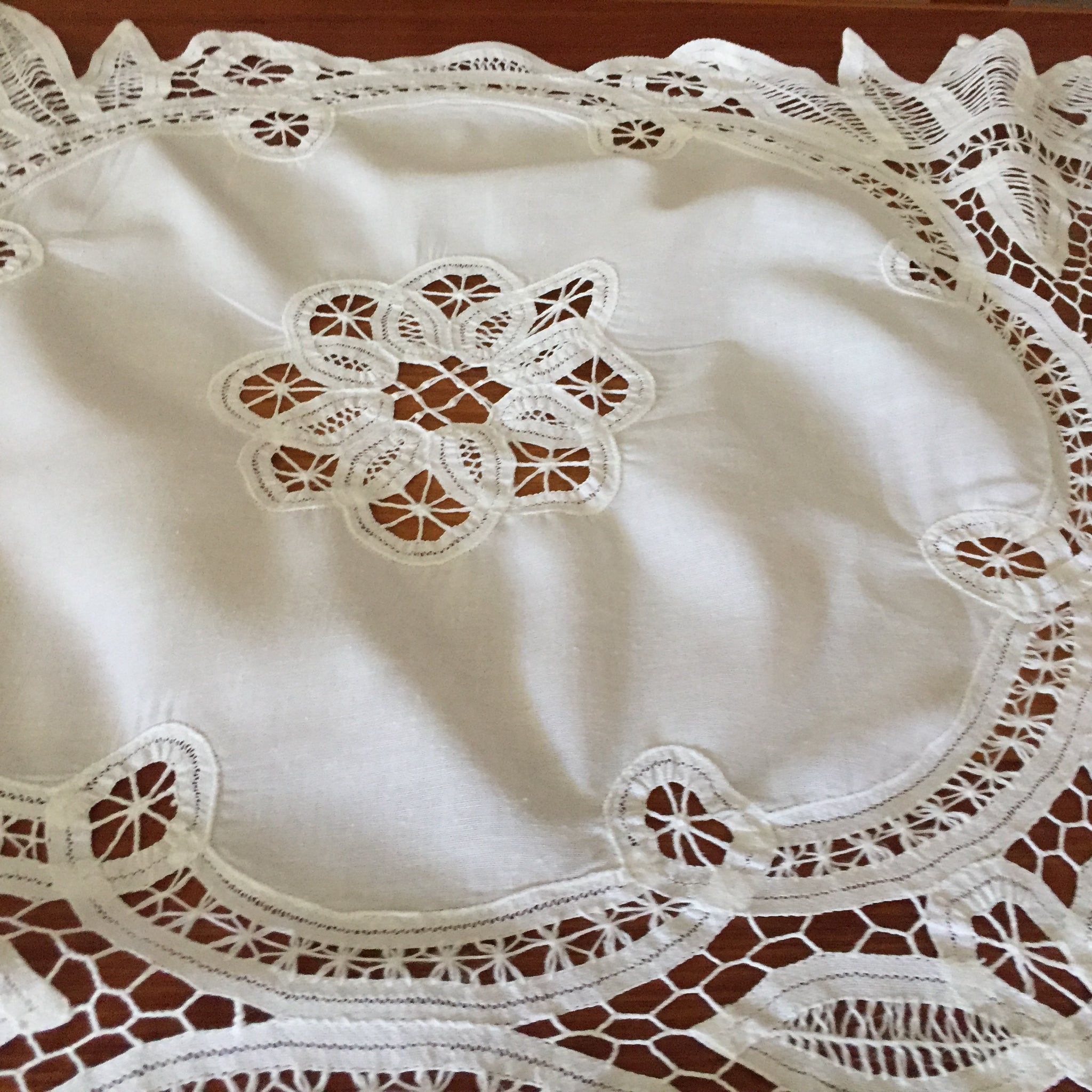 Elevate your table with this exquisite handmade vintage square tablecloth, a timeless piece that brings authentic charm and sophistication to any dining occasion. Crafted from quality white cotton and adorned with delicate Battenburg lace detailing, this cloth measures approximately 88 x 80 cm (34.5 x 31.5 inches)—the ideal size for intimate gatherings or special celebrations.