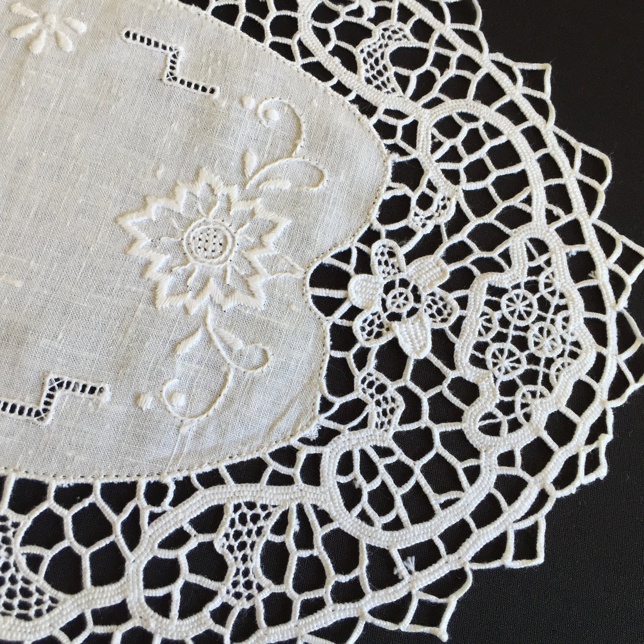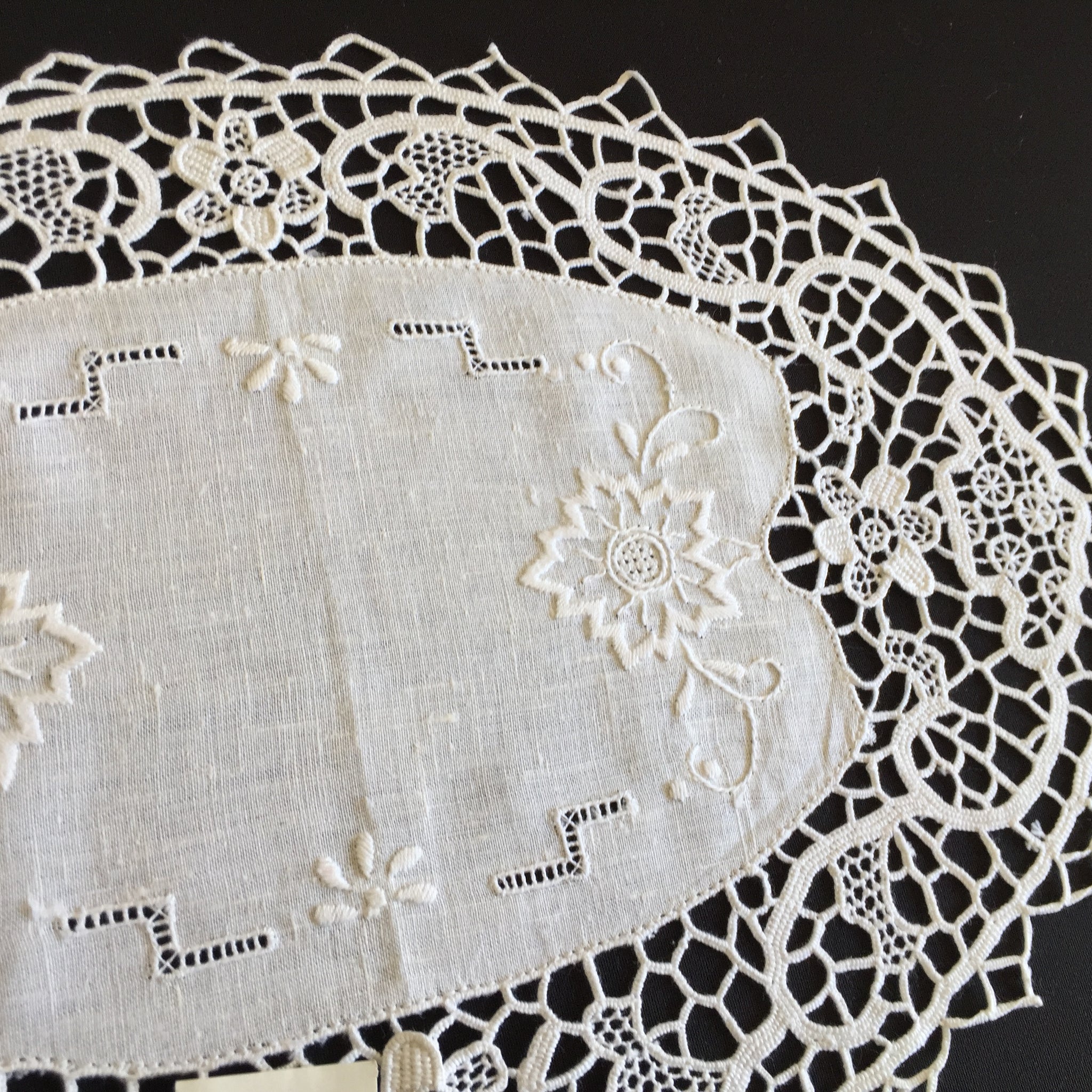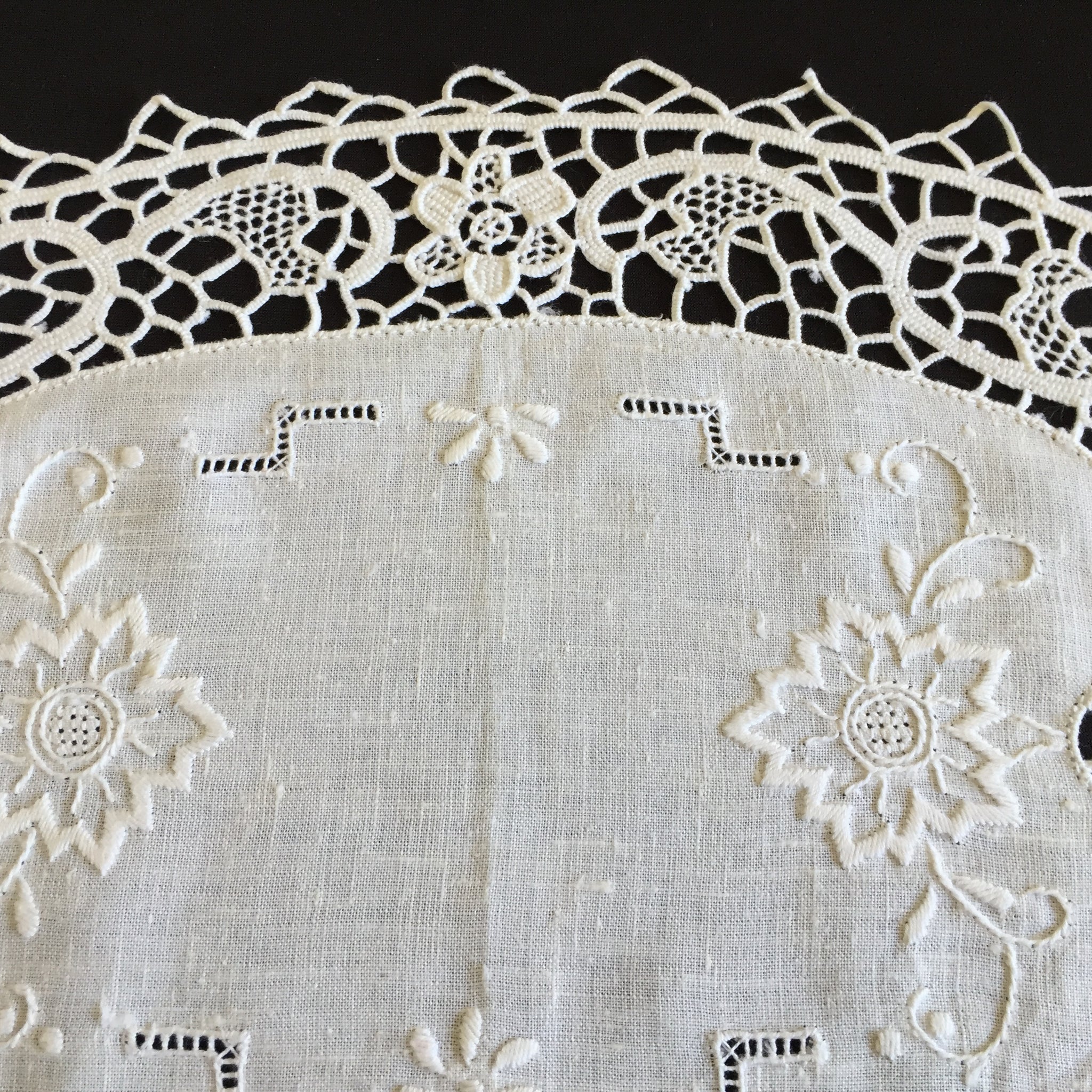 This stunning authentic handcrafted Italian lace doily would have taken weeks to make. It has a hand embroidered white linen centre with beautiful, deep Point de Venise needle lace edging.