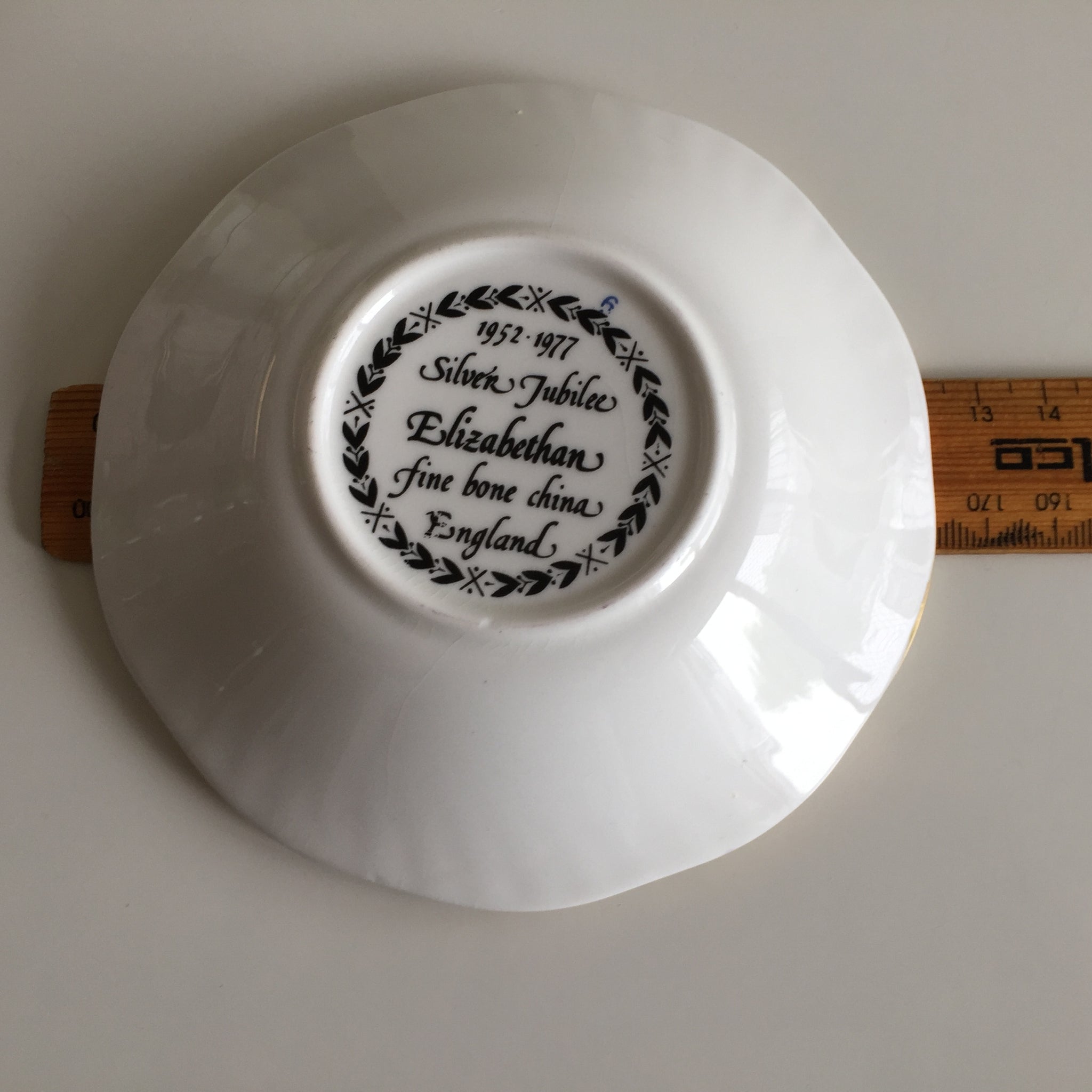 Measuring 12 cm across and 3 cm deep, this fine porcelain exemplifies the superior craftsmanship of vintage British ceramics—built to endure and cherish for generations. The bone china construction ensures both refinement and longevity, a hallmark of pieces that have survived decades with grace.