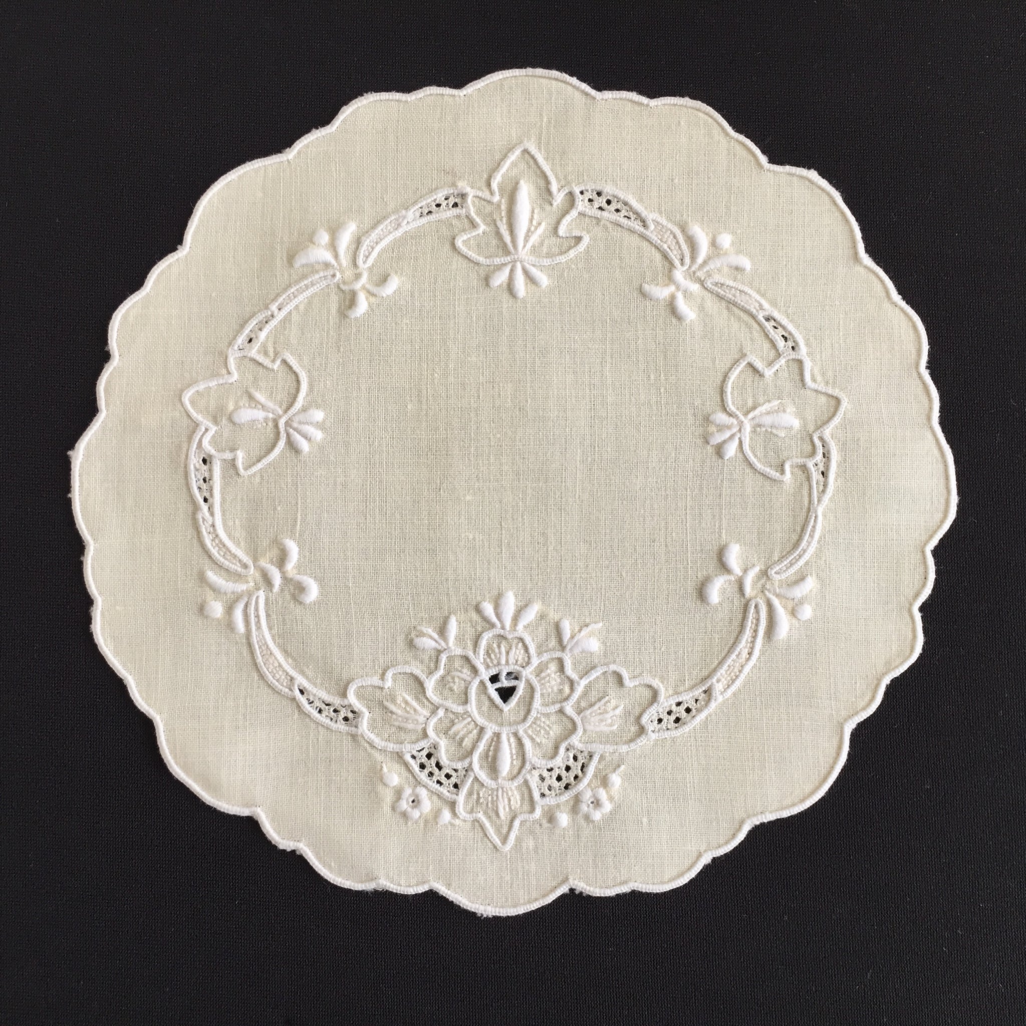 Whether you're a seasoned collector or discovering vintage linens for the first time, this doily represents genuine heritage and quality that modern reproductions simply cannot replicate. Perfect as a stunning accent for styled shelving, table settings during special occasions, or as a treasured heirloom gift for someone who appreciates handcrafted beauty. Inspect the detailed images to appreciate the intricate embroidery work and authentic vintage character.