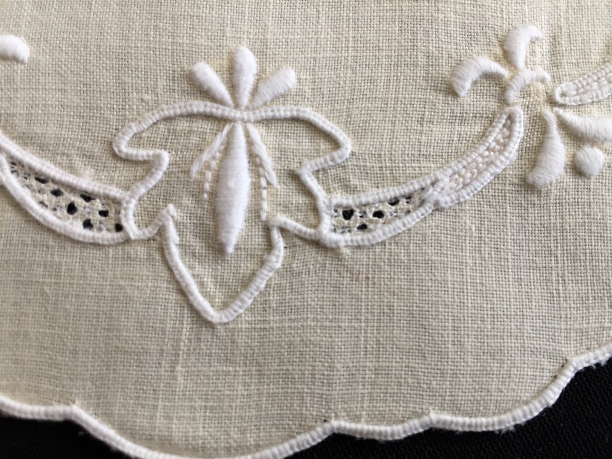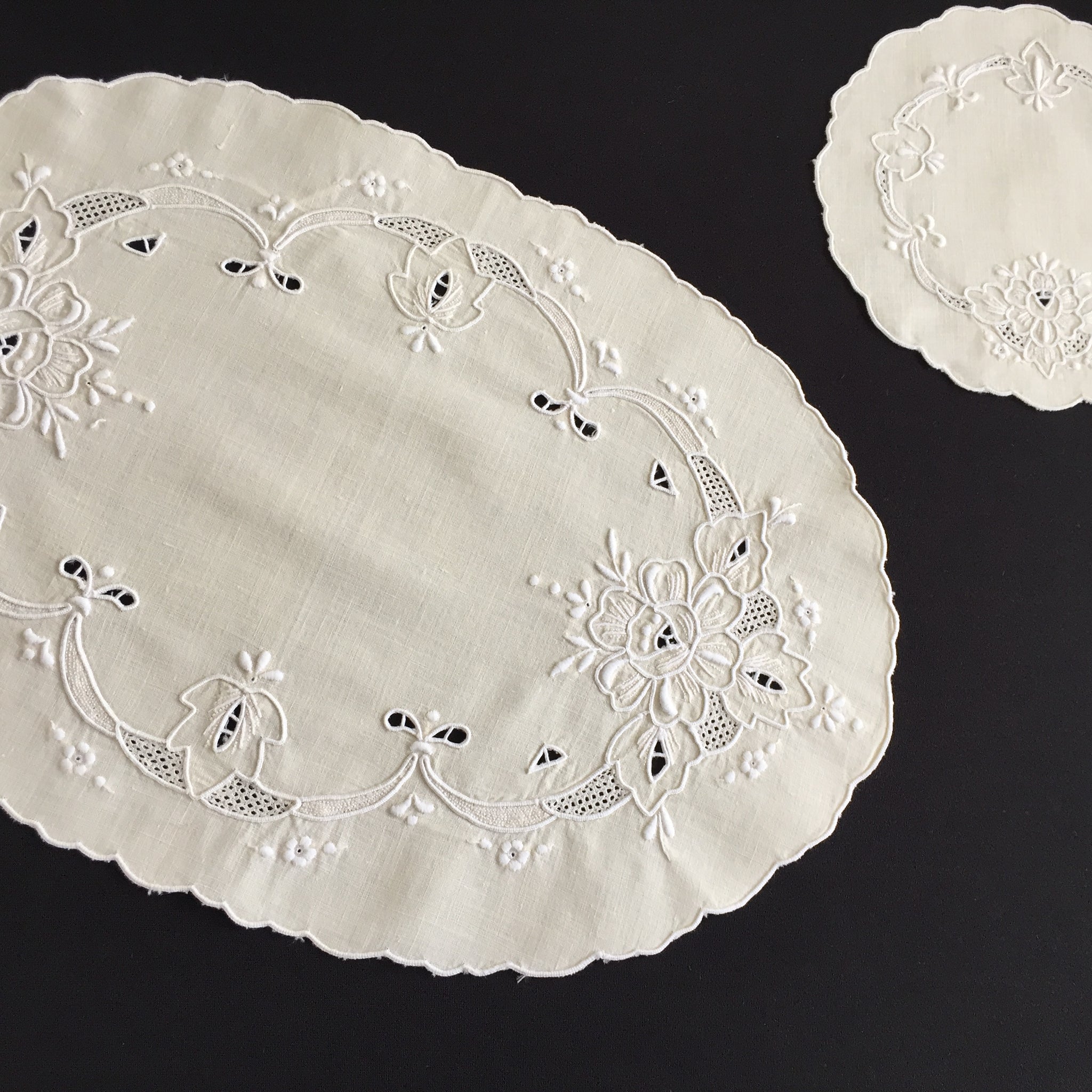 Each piece bears the gentle patina of age with excellent preservation and minimal wear, adding character and authenticity to your vintage textile collection. The craftsmanship evident in every cutwork detail and hand-finished edge reflects the dedication of skilled artisans who created these treasures decades ago.