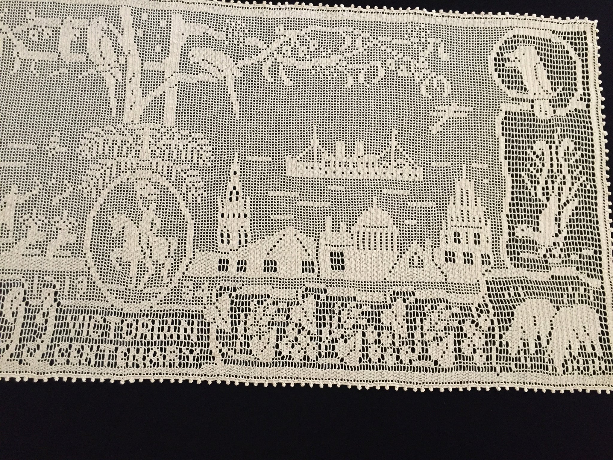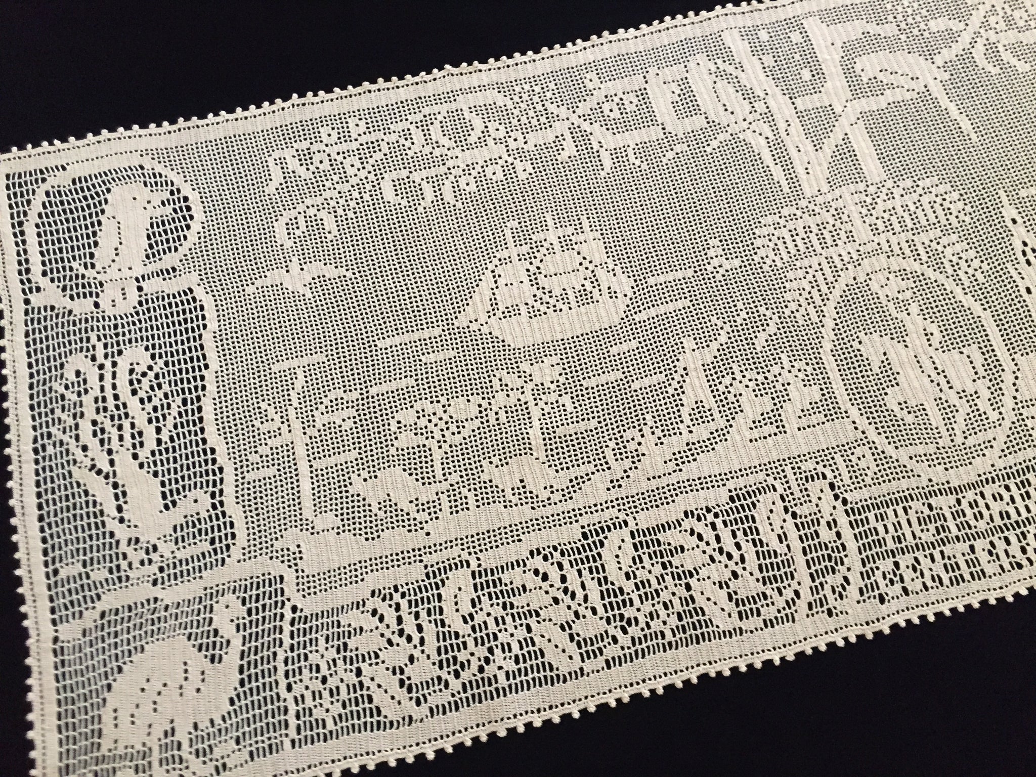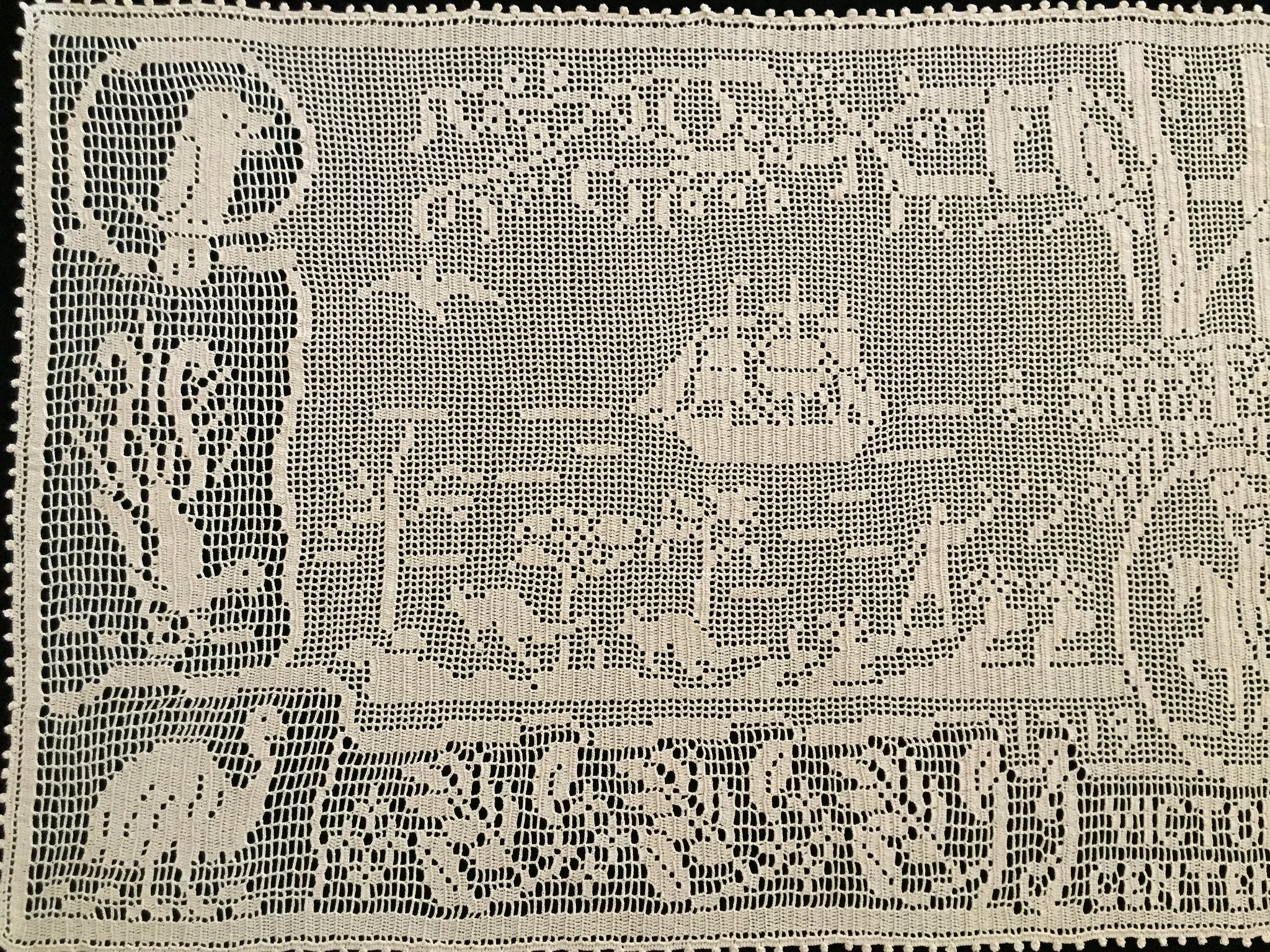 Ultra rare lace collectors item. Very few collectors have seen a worked example of this design, or even know it exists. In fantastic vintage (used) condition. It was obviously treasured ever since it was made.
