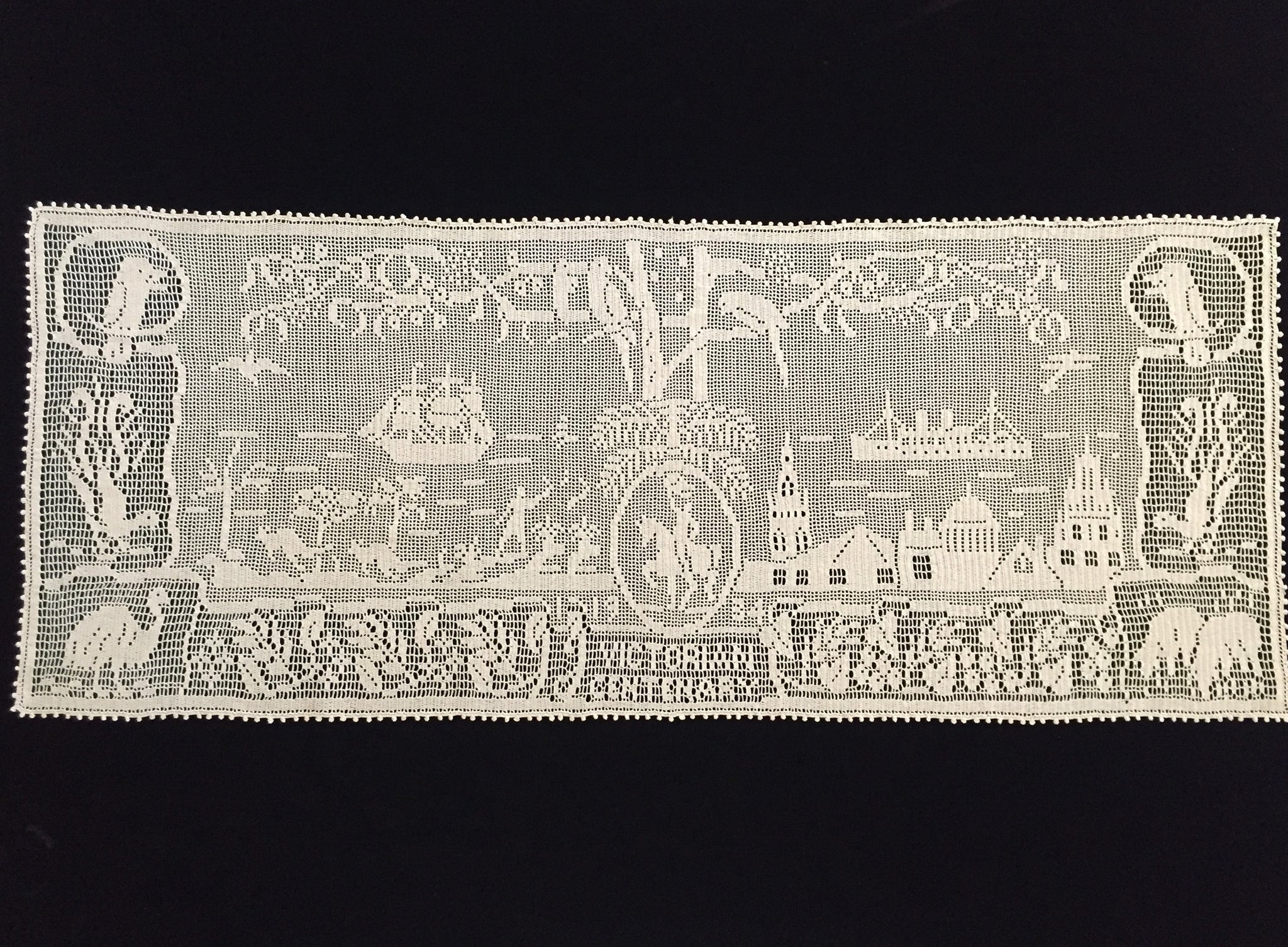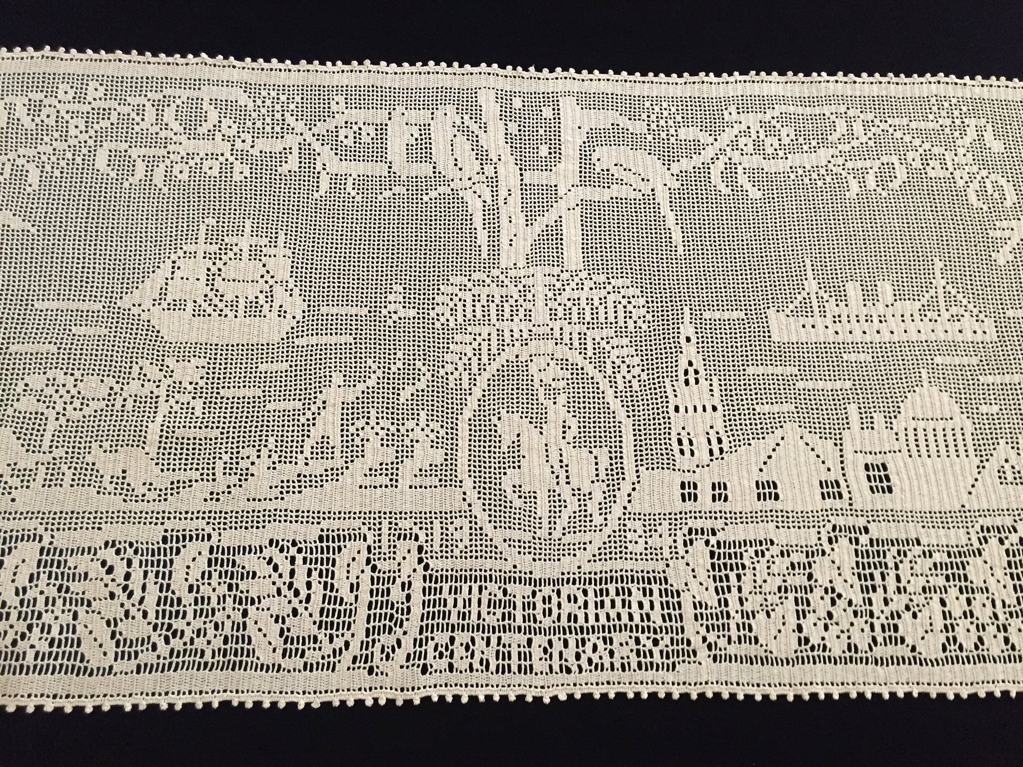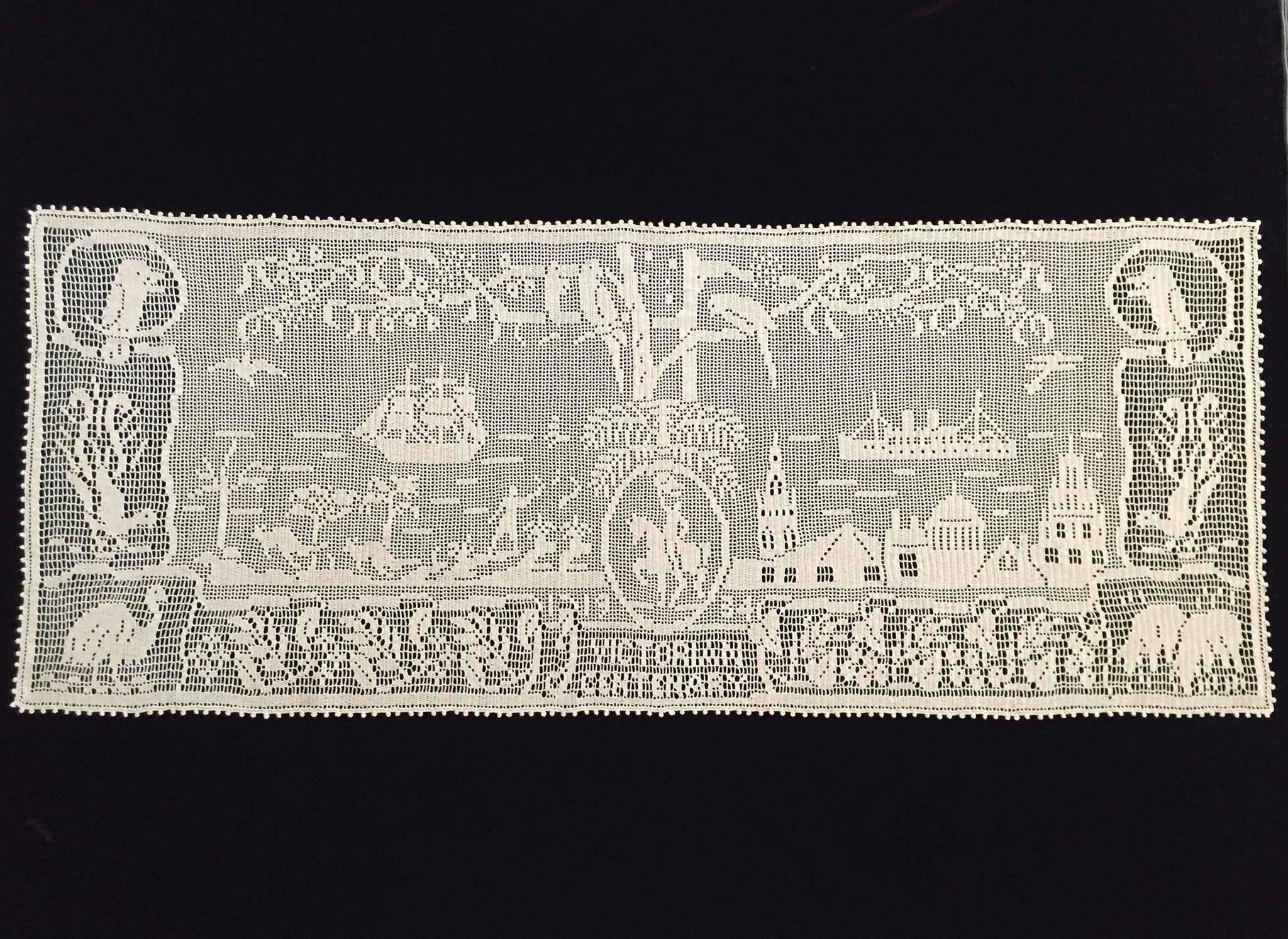 Ultra rare lace collectors item. Very few collectors have seen a worked example of this design, or even know it exists. In fantastic vintage (used) condition. It was obviously treasured ever since it was made.