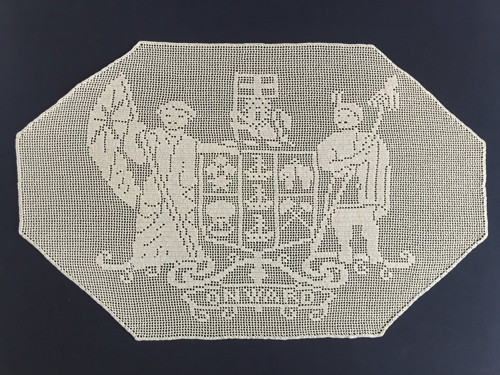 Extremely rare authentic Mary Card lace inset originally designed to be used on a bedspread or cushion cover. Colour is natural light ecru, size is 57 x 36 cm (22.5 x 14") approximately. Expertly worked and blocked, cherished ever since it was made. Shipping with tracking and insurance.