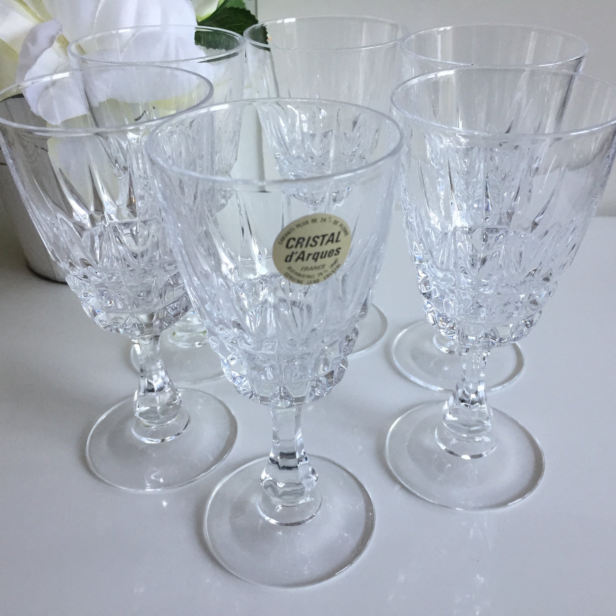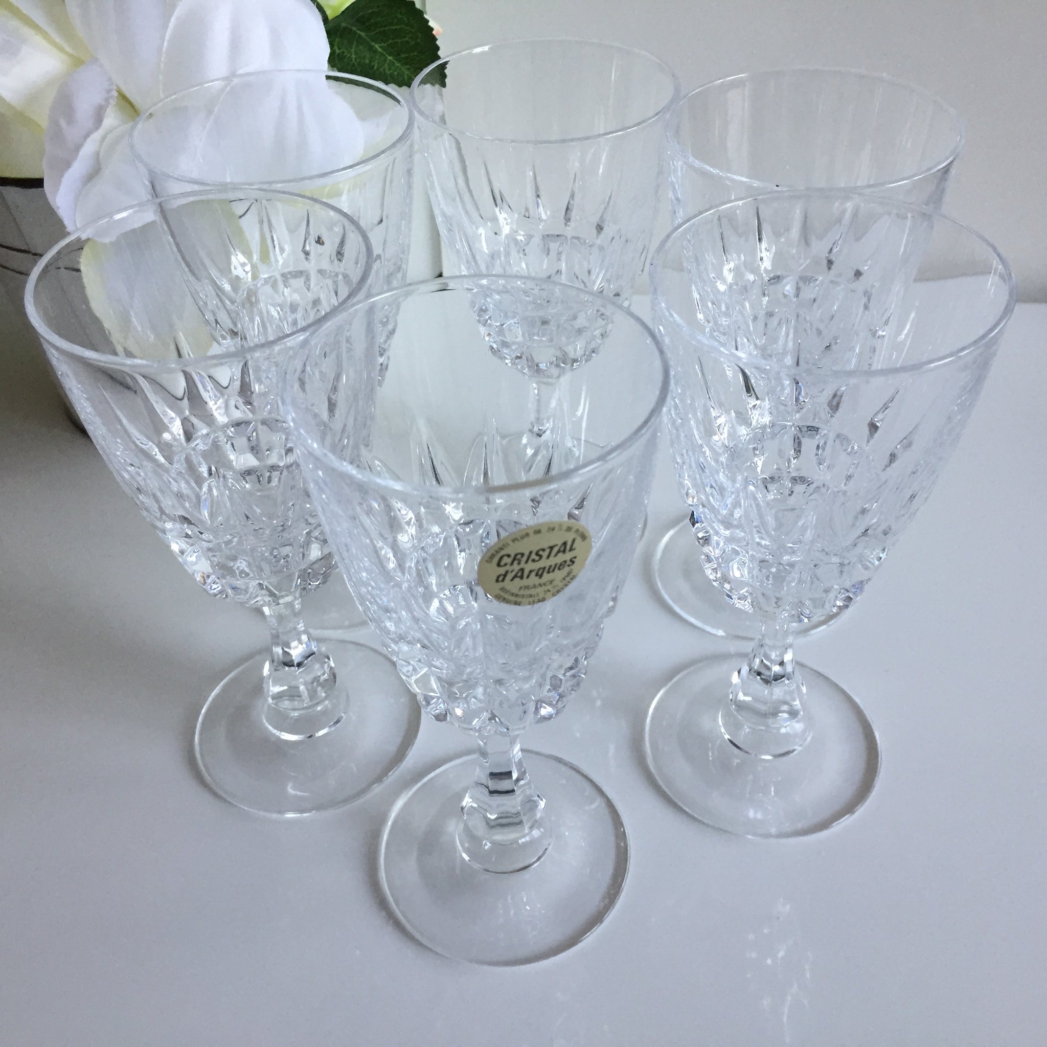 Discover the elegance of authentic vintage Cristal D'Arques wine goblets, crafted from 24% lead crystal for superior clarity and brilliance. This exceptional six-piece set arrives in pristine condition—free from chips, cracks, and clouding—ready to elevate your entertaining experience.