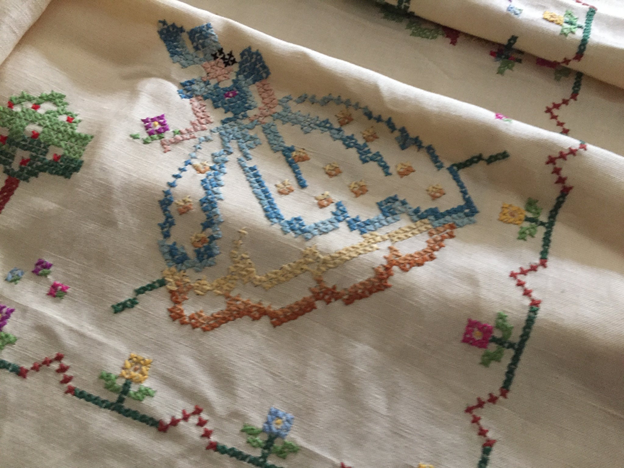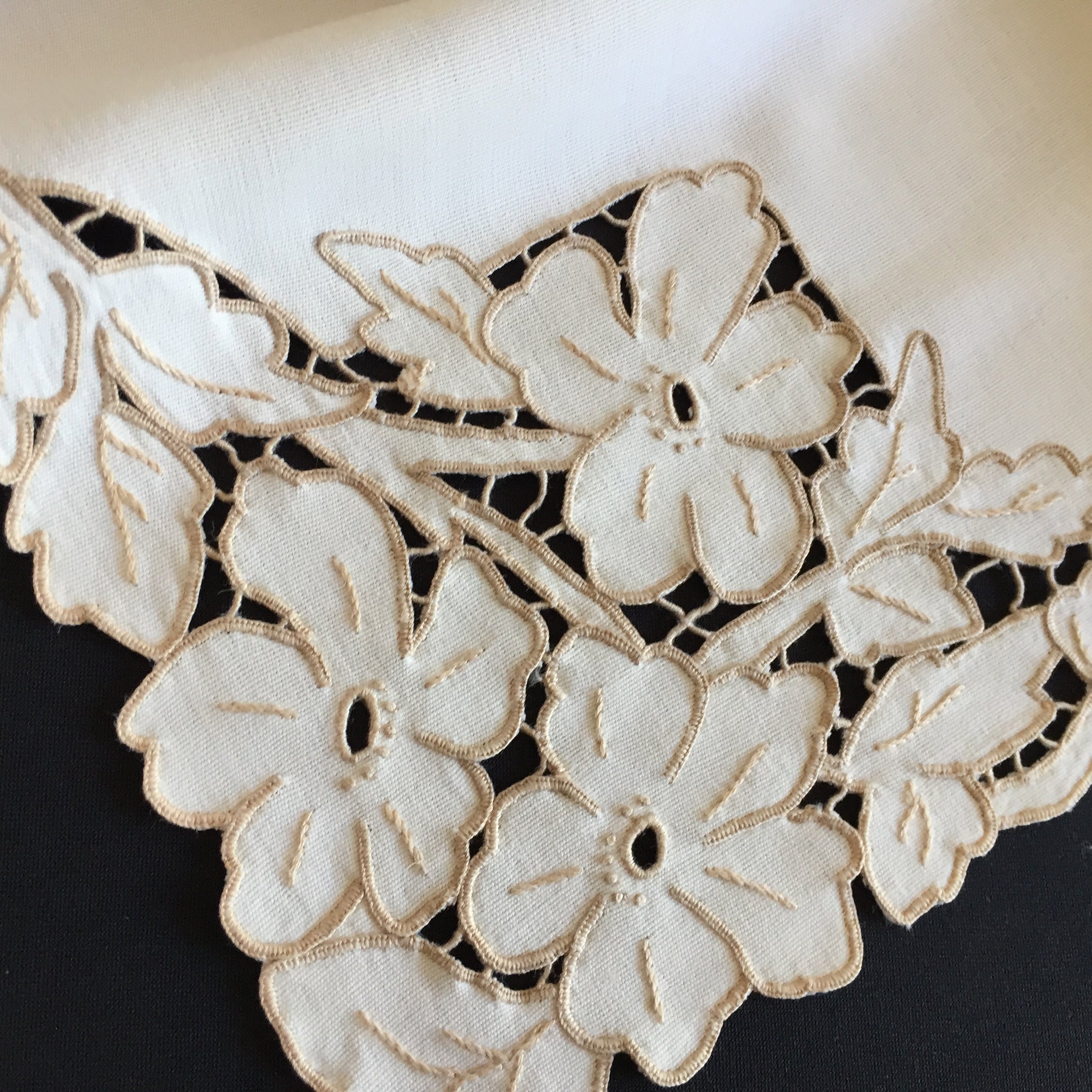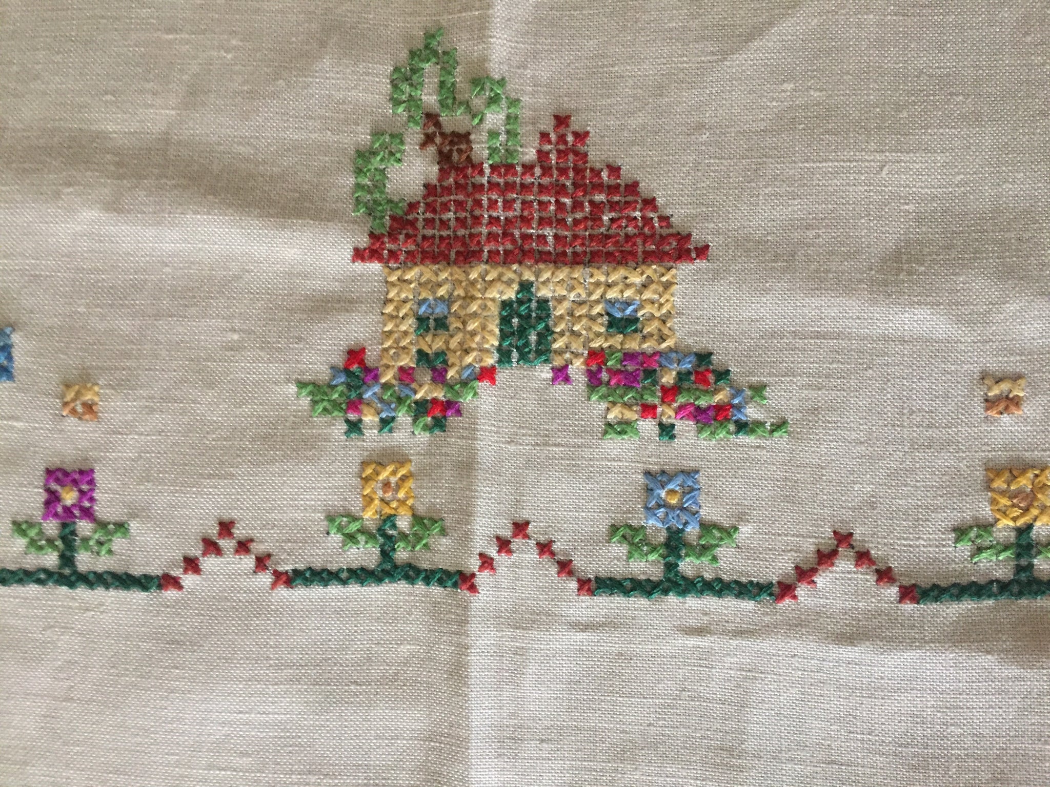 Discover the timeless elegance of this vintage embroidered square linen tablecloth. In good vintage condition with minor age/storage marks that adds authentic character, this handcrafted piece represents quality craftsmanship from a bygone era.