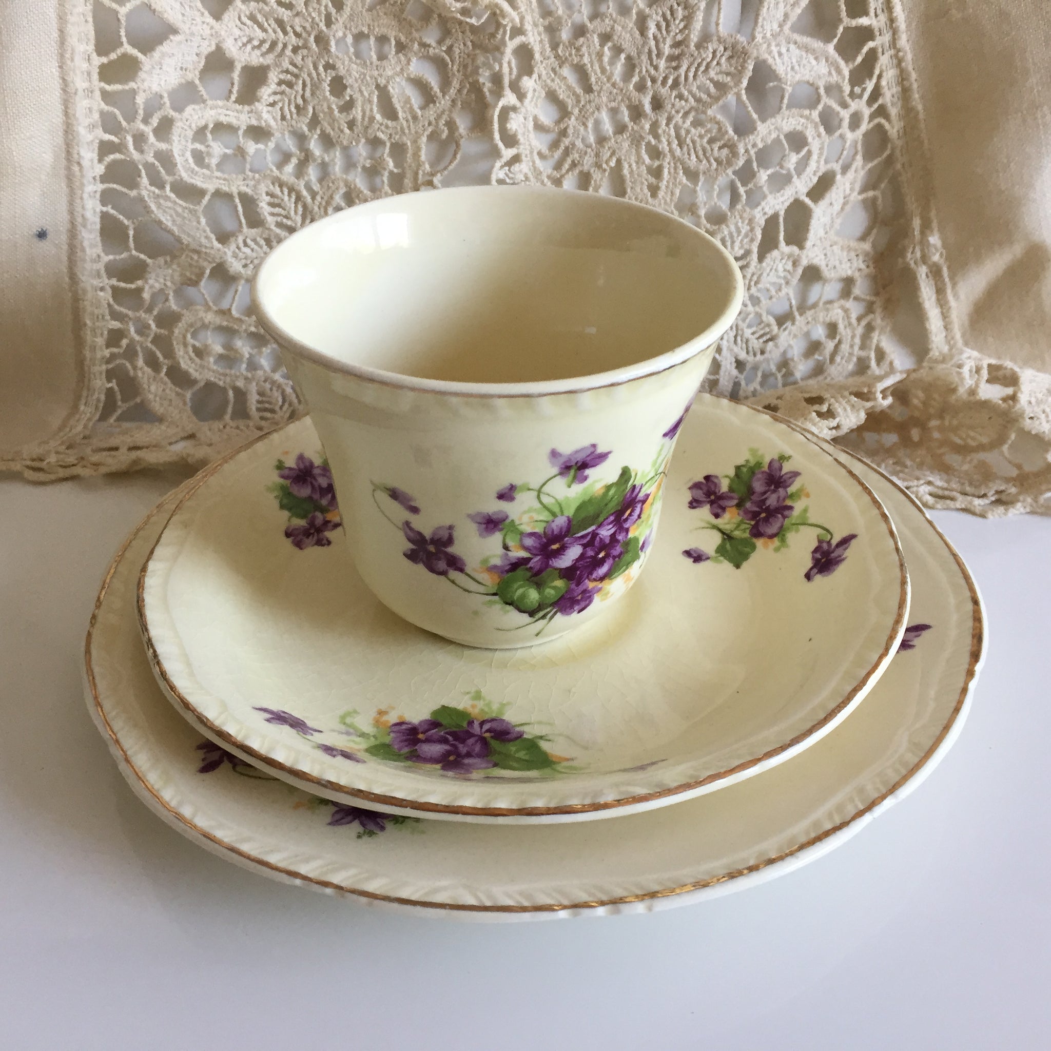 The luminous glaze and exquisite floral details speak to the skilled artistry of vintage porcelain makers, instantly captivating collectors and design aficionados alike. Ideal for those who cherish refined moments, this trio elevates intimate gatherings and transforms any table setting into a showcase of timeless grace.